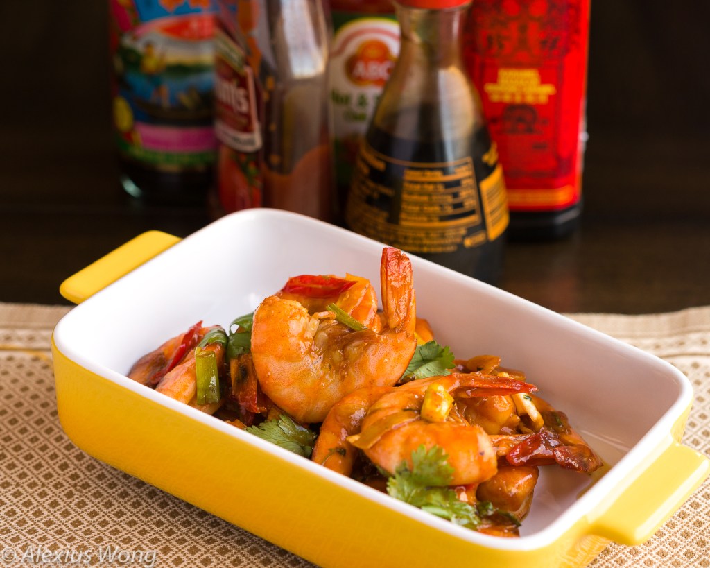 In addition the above sauce ingredients, this relatively easy dish packs a lot of flavor from the ginger root, garlic, oyster sauce, white pepper, and dark soy sauce, all contributing to a complex sauce that will make you want to savor every drop coating the shrimp shell before peeling it. In addition, the young celery leaves and spring onions bring in more herbal aromatics and texture to the dish. To avoid overcooking the shrimp, mix all the sauce ingredients in a bowl, and pour it into the pan once the shrimp is no more pink on the outside. If you cannot find young celery, you can substitute it with celery leaves or cilantro that are chopped fine.