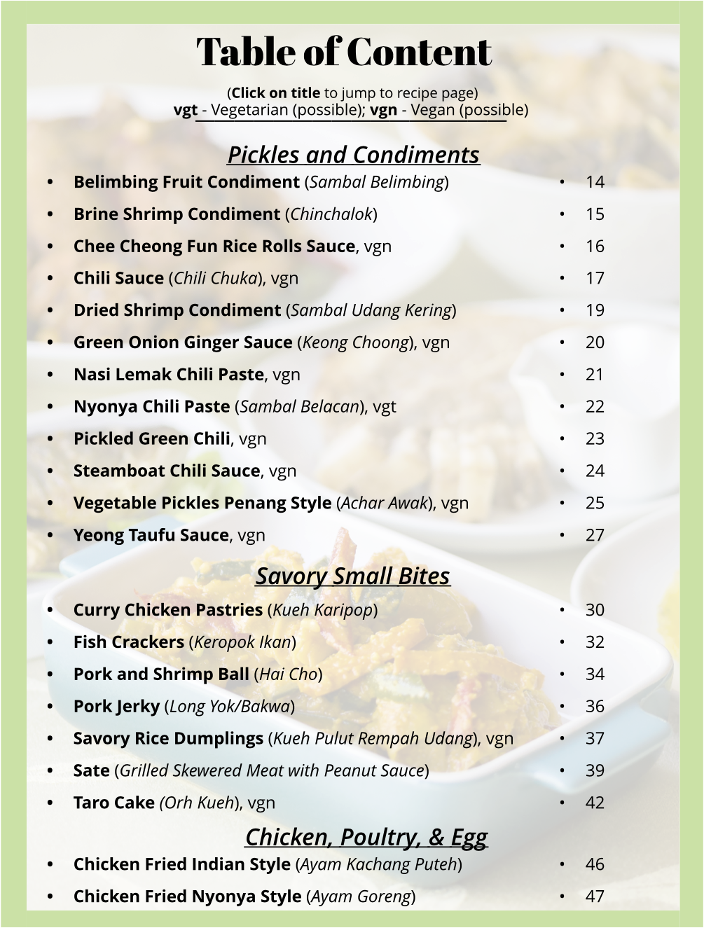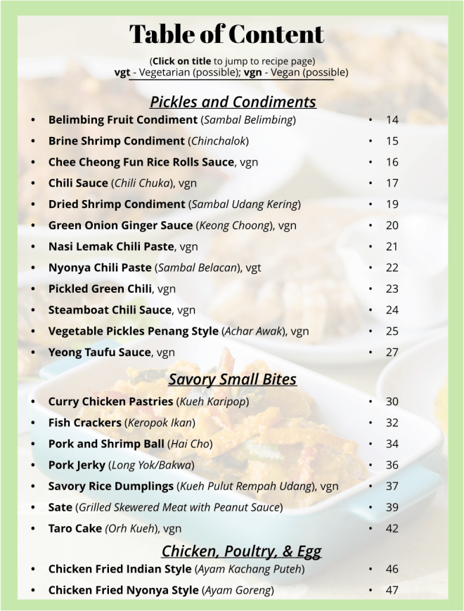 Baba Nyonya Peranakans informs readers with the History, Culture, Food, and authentic Recipes of this Southeast Asian culture of Malaysia and Singapore.